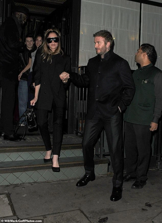 Beckham đỡ vợ rời khỏi quán (Ảnh: GoffPhoto)