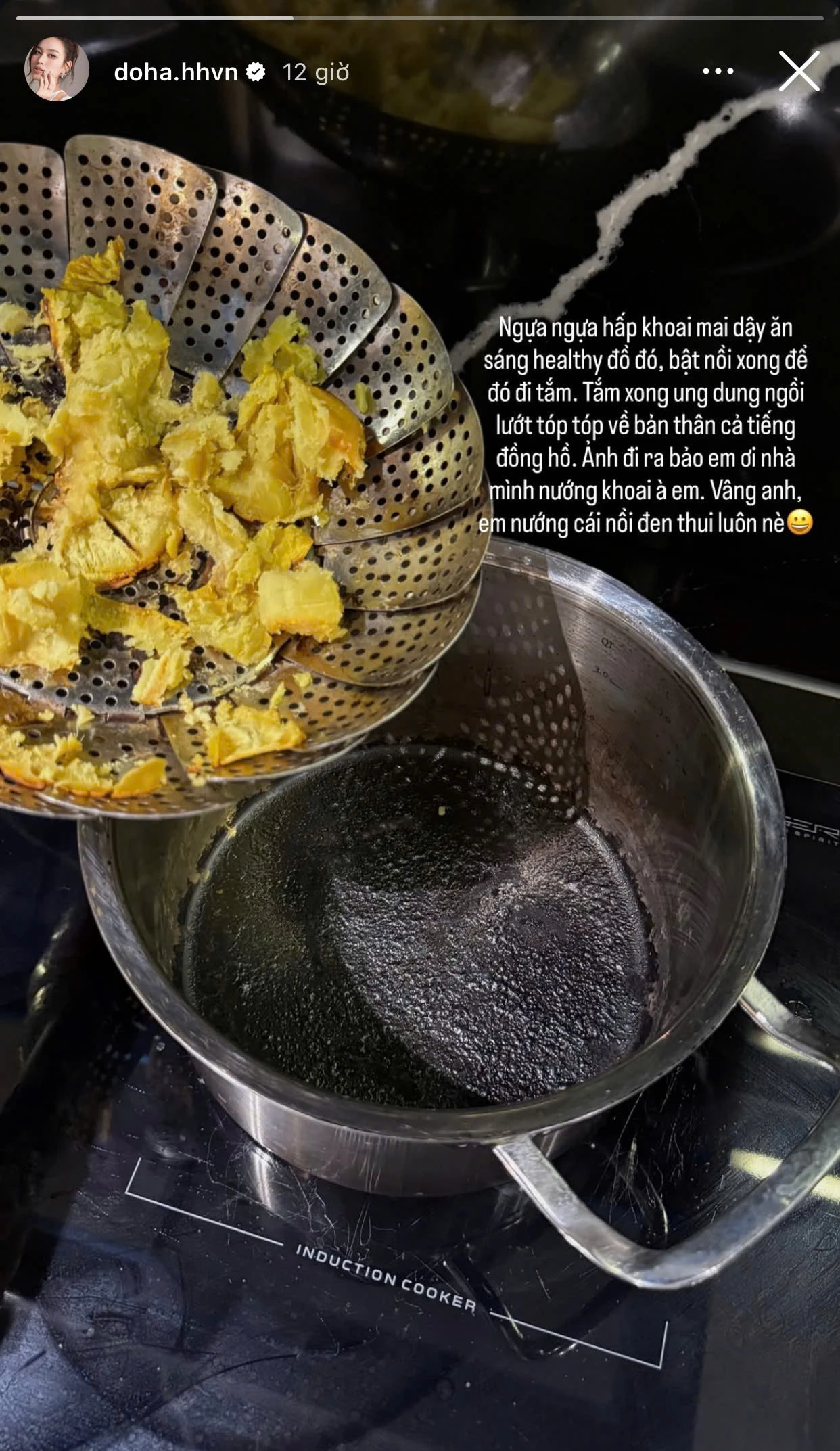 Từ hình ảnh luộc khoai cháy đen nồi được nàng dâu mới chia sẻ sau đám cưới, nhiều người nhanh chóng nhận ra đây chính là khu vực bếp trong căn hộ của Đỗ Hà. Căn hộ này từng được nàng Hậu cho lên sóng nhiều lần trước đó nên cư dân mạng cho rằng cặp đôi vẫn tiếp tục sống ở đây.