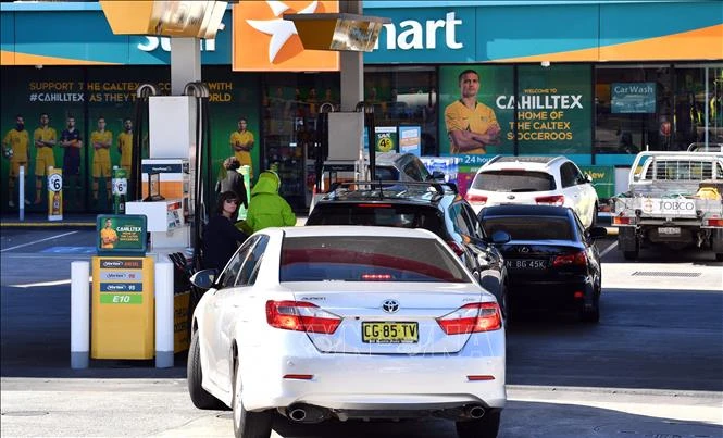 Đổ xăng cho các phương tiện tại trạm xăng ở Sydney, Australia. Ảnh: AFP/TTXVN