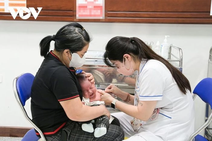 Tại đơn nguyên Tiêm chủng, Bệnh viện Nhi Hà Nội, nhiều gia đình đã chủ động đưa trẻ đi tiêm vaccine phòng cúm cũng như phòng các bệnh giao mùa khác. Bà Đào Thị Quỳnh (Sóc Sơn, Hà Nội) cùng con gái đưa cháu ngoại hơn một tháng tuổi đến tái khám sau khi bé mắc RSV trong tháng. Tại đây, bác sĩ đánh giá sức khỏe của bé đã ổn định và chỉ định có thể tiêm phòng lao nên gia đình cho bé xuống khu tiêm chủng. “Gần đây tôi thấy nhiều người xung quanh mắc cúm, báo đài cũng liên tục cảnh báo dịch. Cháu vừa khỏi RSV, nên khi đủ tháng là tôi đưa đi tiêm ngay”, bà Quỳnh chia sẻ.