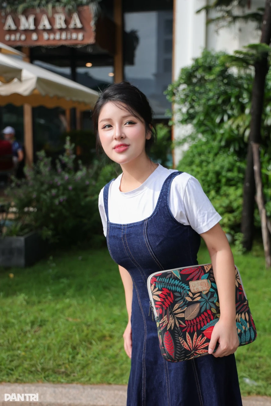 “Khi lên lớp, tôi ưu tiên sự phù hợp và kín đáo. Mặc sơ mi, chân váy chữ A hay váy liền vừa thanh lịch vừa thoải mái, đứng cả ngày cũng không mệt”, cô nói.