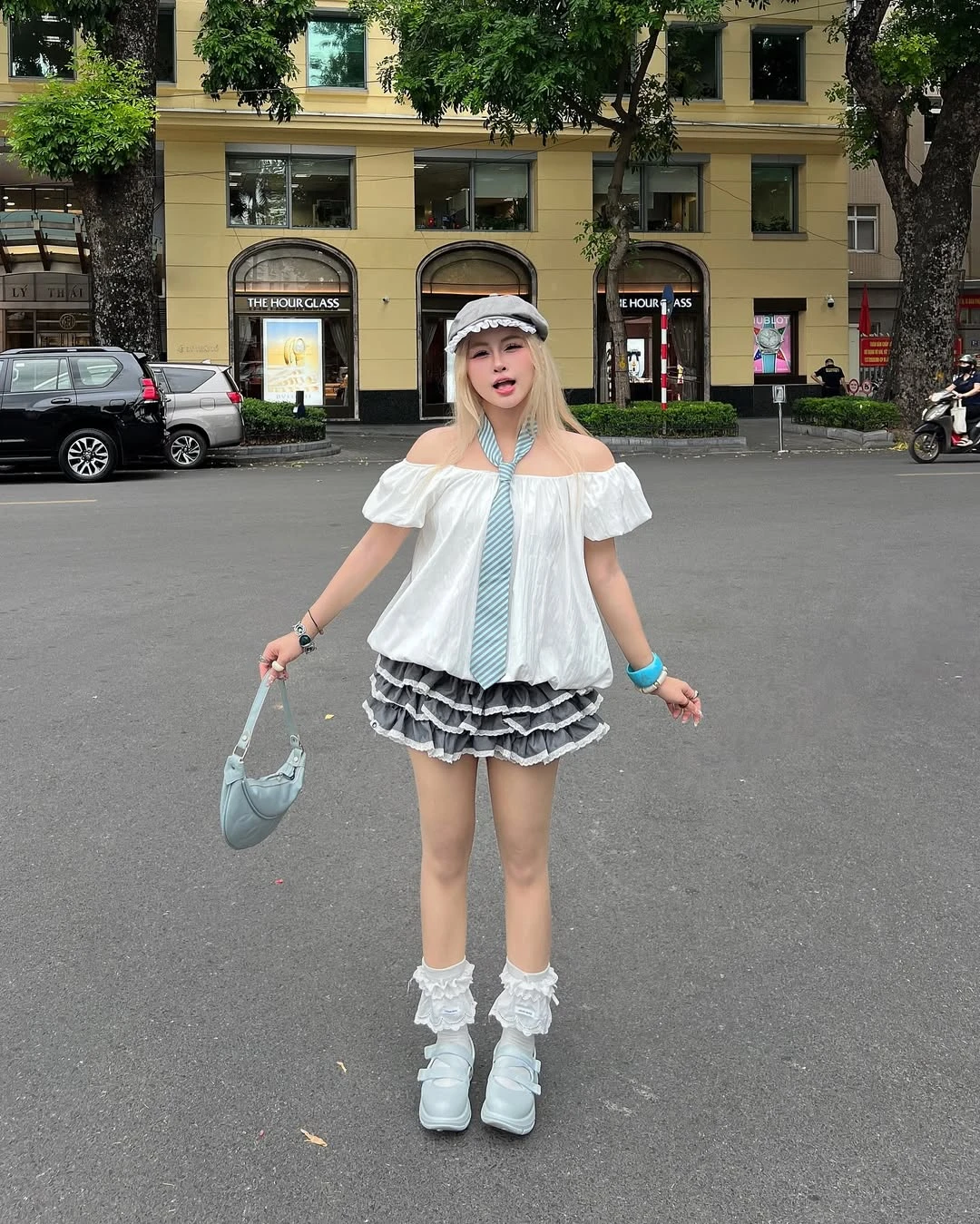 Một chút biến tấu trong cách phối đồ với chân váy ngắn có thể mang đến diện mạo hoàn toàn mới . ẢNH: @_HYN.HINE_