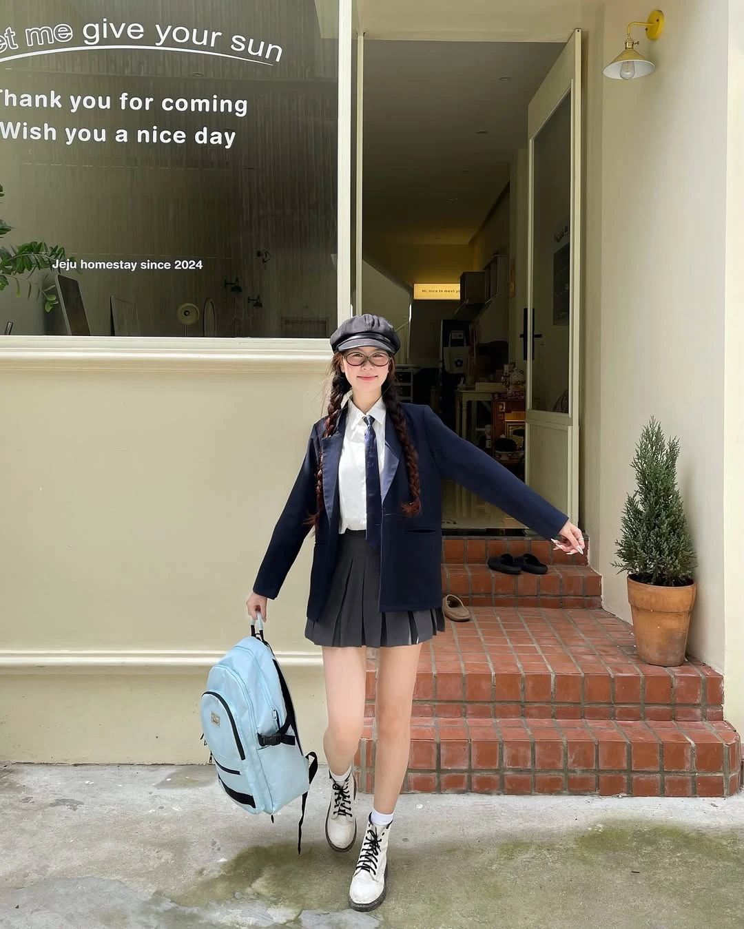 Bí quyết phối áo sơ mi, blazer, mũ beret và điểm nhấn cà vạt giúp set đồ của bạn vừa thanh lịch lại vừa toát lên sự trẻ trung, quyến rũ.