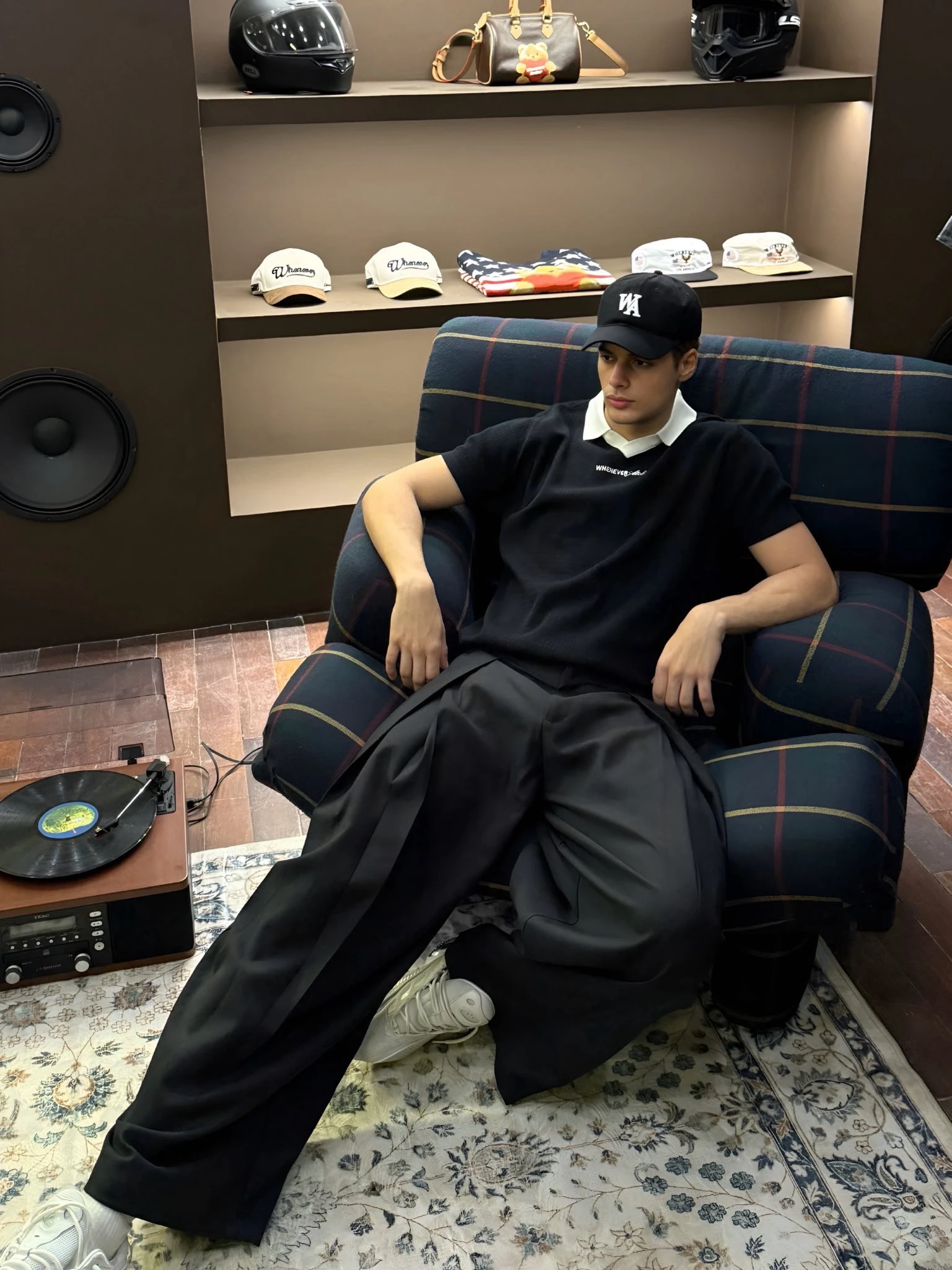 Xuống phố cực ấn tượng trong ngày đầu thu khi diện polo xanh đen và mũ cùng tông, quần shorts, giày thể thao kèm tất trắng cao cổ . ẢNH: WHENEVER ATELIER
