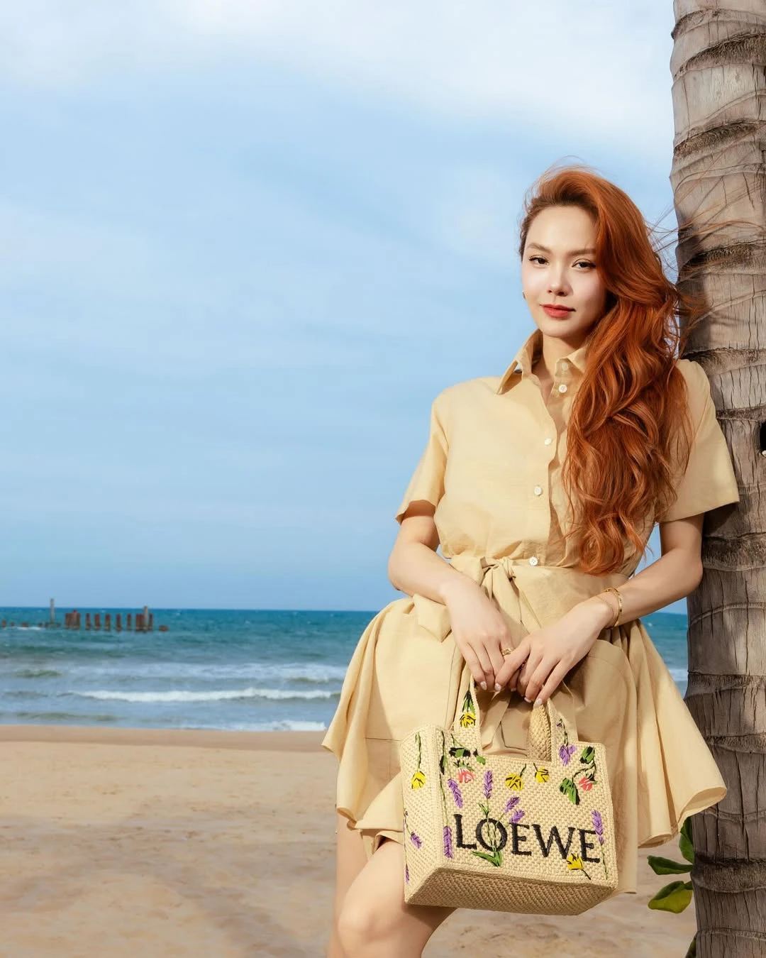 Khi kết hợp cùng túi cói, nàng dễ dàng toát lên phong thái trẻ trung, đặc biệt nổi bật giữa nắng vàng và biển xanh ngày hè.