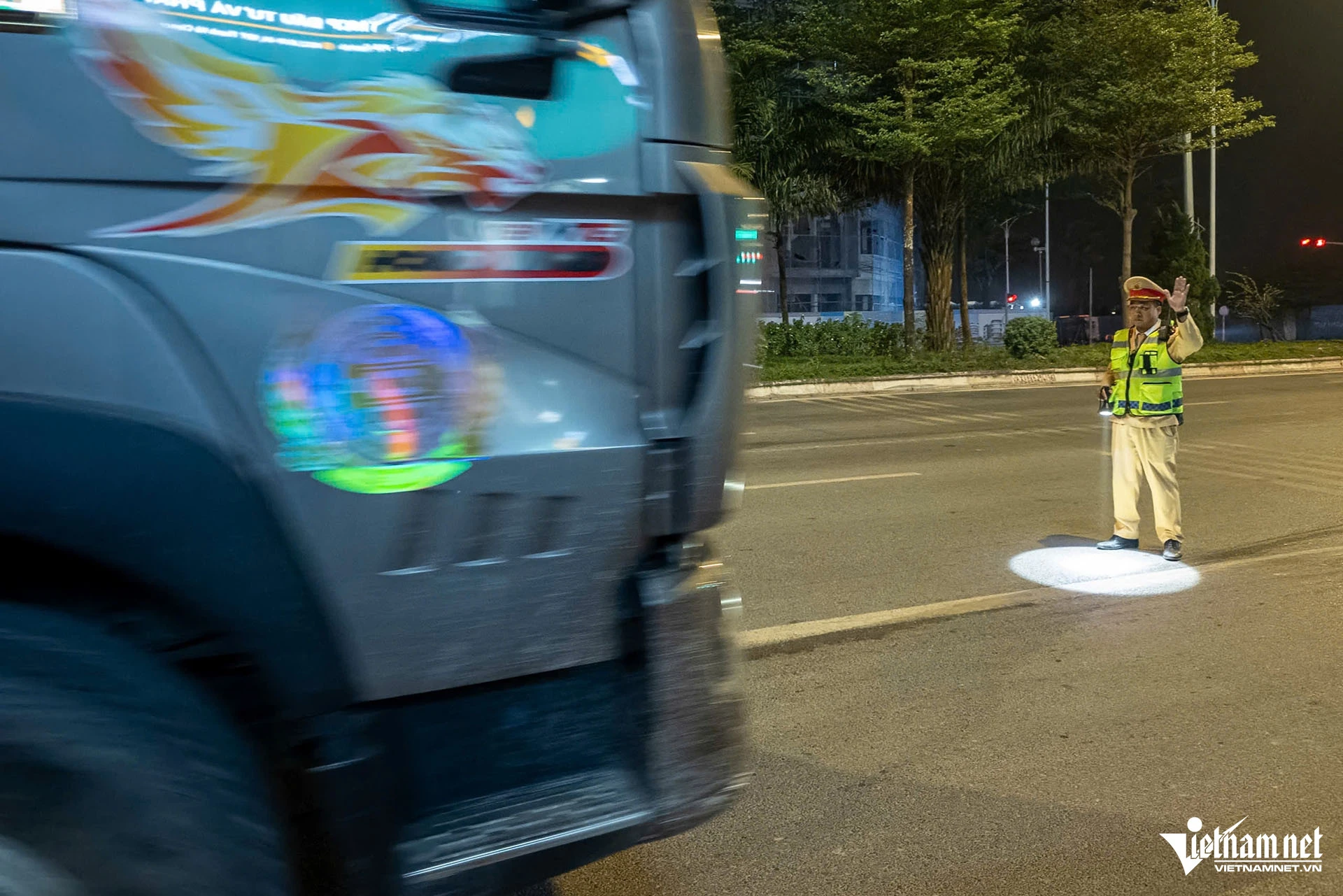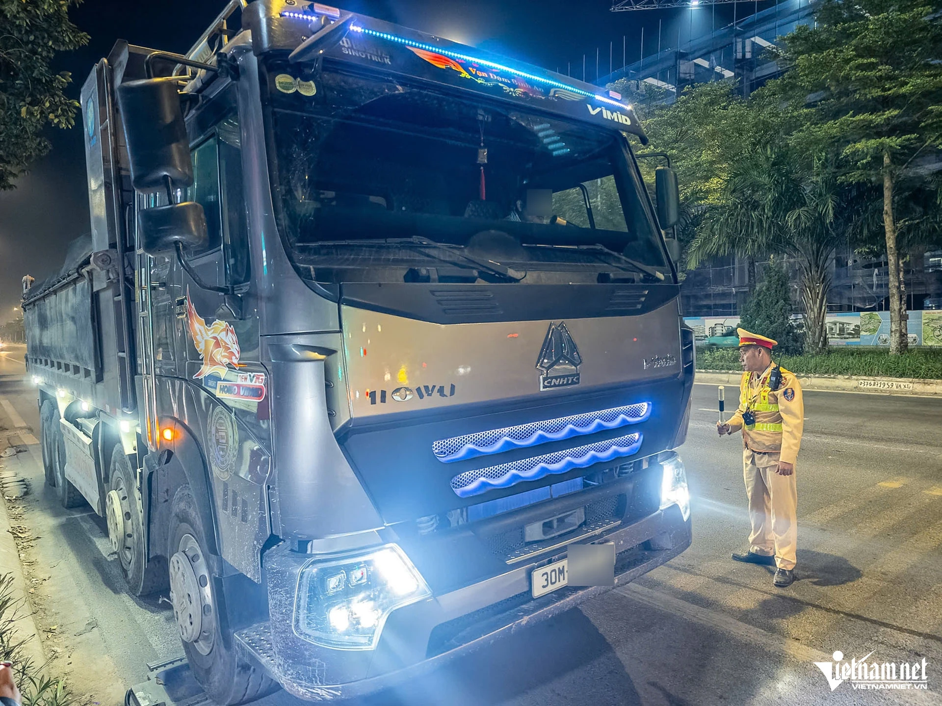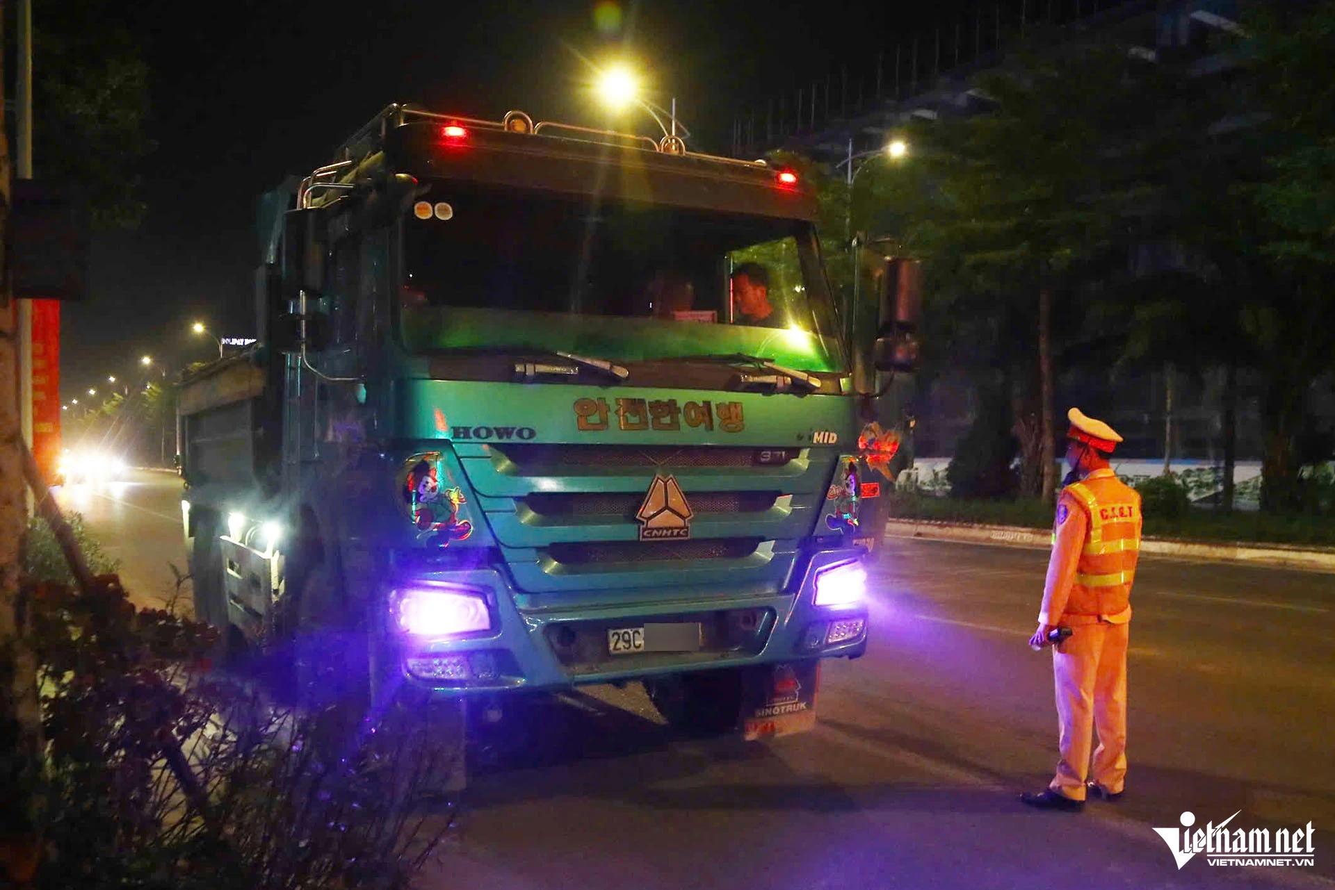 Sau phản ánh của VietNamNet về tình trạng ô tô tải che biển kiểm soát chở hàng vượt thành thùng lưu thông trên nhiều tuyến đường ở Hà Nội, đêm 26 rạng sáng 27/11, Phòng CSGT Công an Hà Nội đã đồng loạt triển khai kiểm tra, xử lý xe tải hoạt động trên địa bàn.