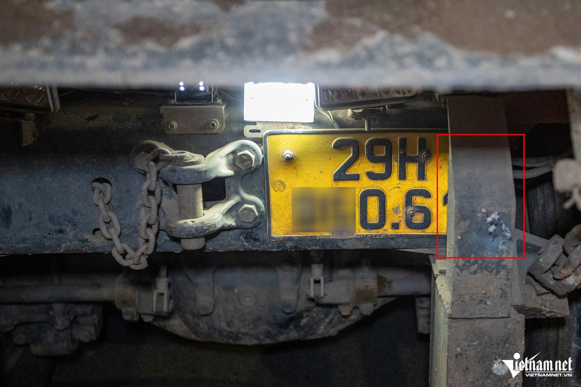 Ít phút sau, tổ công tác của Đội CSGT đường bộ số 10 tiếp tục dừng kiểm tra xe tải biển số 29H-XX0.61. Qua kiểm tra, lực lượng chức năng phát hiện phần cản sau che lấp hoàn toàn một phần chữ, số trên biển kiểm soát.