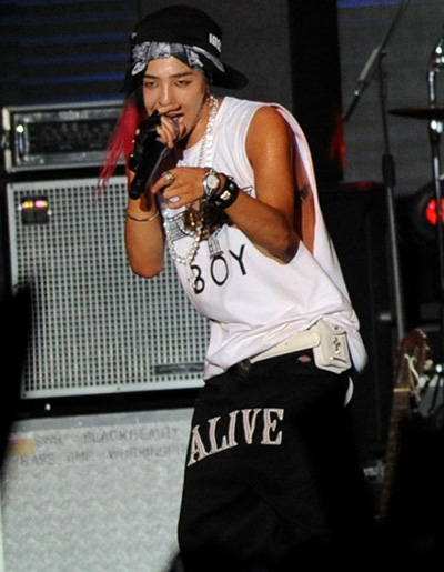 Tae Yang với áo màu sặc sỡ cùng chiếc mũ cá tính