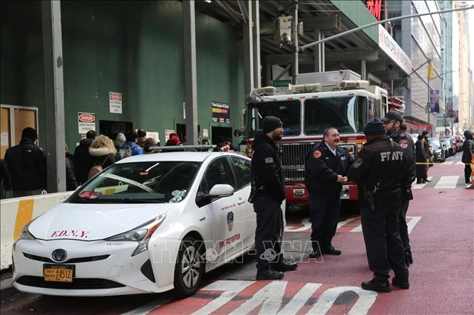 Cảnh sát gác tại Quảng trường Thời đại ở New York, Mỹ ngày 31/12/2024. Ảnh minh họa: THX/TTXVN