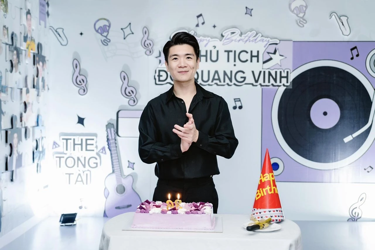 Mới đây, thiếu gia Đỗ Quang Vinh – con trai cả của bầu Hiển – thường được gọi với biệt danh “ bố đơn thân nghìn tỷ” – gây chú ý khi chia sẻ hình ảnh đón sinh nhật tuổi 36. Anh xuất hiện với vẻ ngoài bảnh bao, phong độ, thần thái cuốn hút chuẩn “soái ca doanh nhân”. Dù chỉ diện một chiếc sơ mi đen đơn giản, cậu cả nhà bầu Hiển vẫn nổi bật trong không gian được trang trí theo chủ đề âm nhạc với tông màu tím mộng mơ.