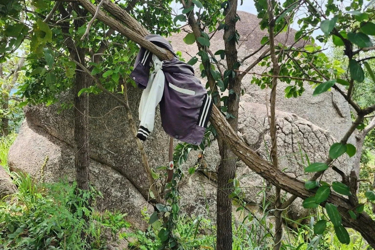 Chiếc áo khoác và thắt lưng buộc trên cành cây (Ảnh: Duy Hải).