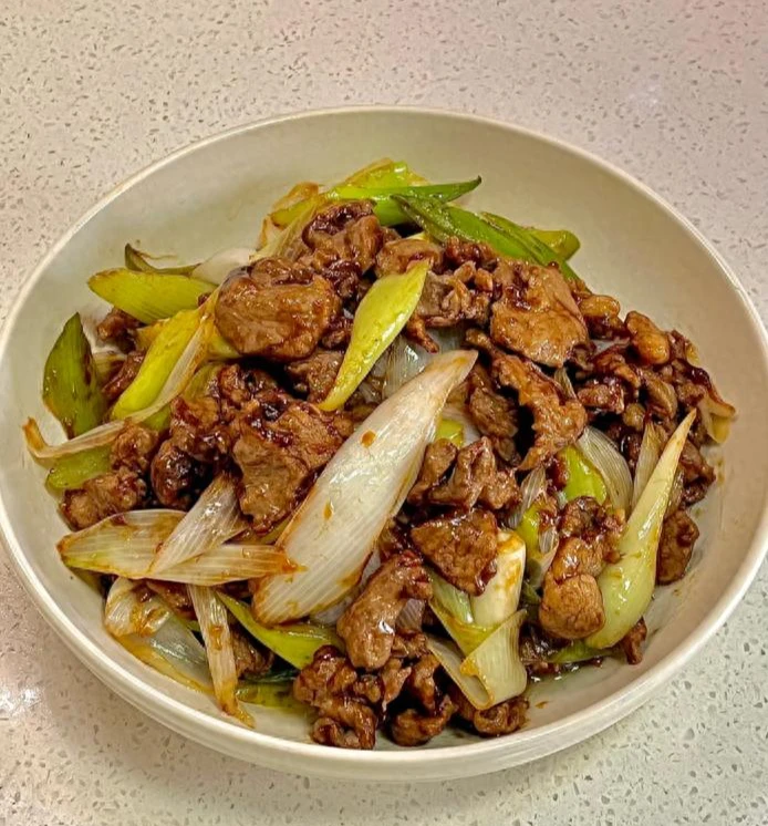 1. Thịt cừu xào hành baro (hành lá)