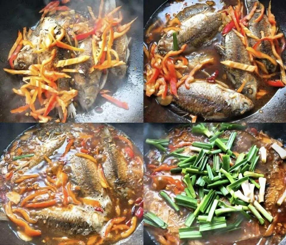Nguyên liệu: 6-8 con cá chép cỡ nhỏ (hoặc cá to cắt khúc), 2 cây tỏi lá, ớt đỏ (dùng ớt ngọt hoặc ớt cay tùy sở thích), gừng, 5 tép tỏi, rượu nấu ăn, tương đậu nành, nước tương đen, nước tương, dầu hào, muối.