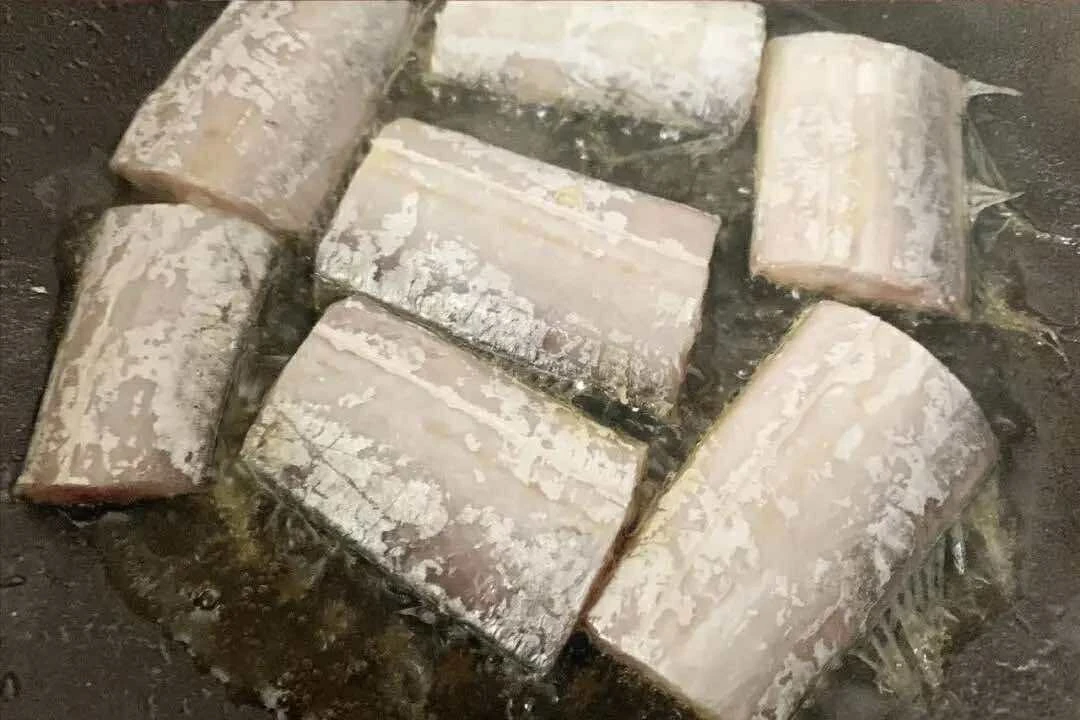 Bước 1: Gọt vỏ củ cải, rửa sạch rồi thái sợi dày (để tránh củ cải dễ bị nát khi nấu). Cắt gừng thành sợi và thái nhỏ phần gốc hành lá. Loại bỏ nội tạng cá, sau đó rửa sạch với nước sạch để loại bỏ hết máu. Sau khi rửa sạch, cắt cá thành từng khúc. Tiếp theo, làm nóng dầu trong chảo. Khi dầu nóng, cho cá vào chiên trên lửa nhỏ cho đến khi vàng đều hai mặt.