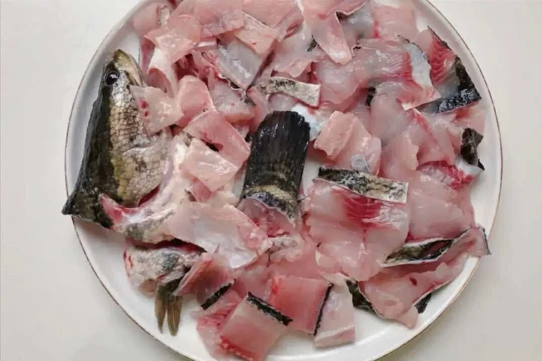 Bước 1: Cá lóc làm sạch, sau đó lọc phi lê rồi thái lát mỏng, cho vào bát lớn. Thêm chút muối, 1 thìa canh rượu nấu ăn vào, rắc một lượng tiêu đen xay vừa đủ, và 1 thìa canh bột bắp. Trộn đều bằng tay sao cho từng miếng cá được phủ đều gia vị, rồi ướp một lúc.