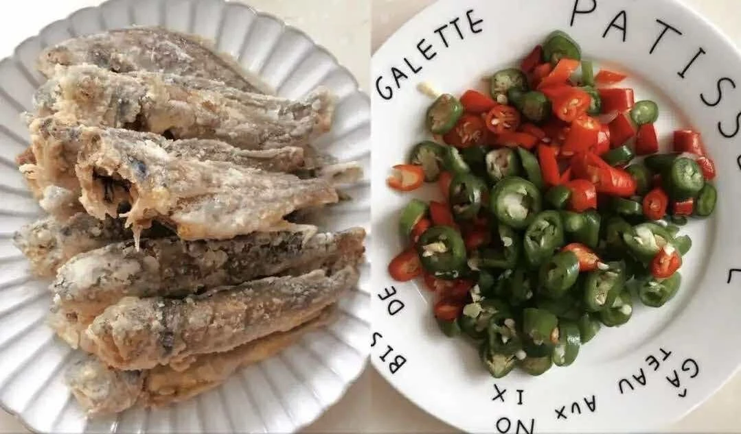 Nguyên liệu: 500g cá đù vàng nhỏ, 3 quả ớt đỏ cay (loại nhỏ), 5 quả ớt ngọt xanh, hành lá, gừng, tỏi và ớt.