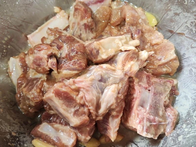 Bước 1: Rửa sạch sườn, rồi chặt thành các miếng vừa ăn. Sau đó cho sườn heo vào thố, thêm gừng và tỏi băm vào, trộn đều. Tiếp đó bạn cho bột năng và dầu hào, gia vị vào rồi trộn đều; rưới thêm một ít dầu ăn lên tiếp tục trộn đều. Dùng màng bọc thực phẩm bọc lại và ướp sườn trong khoảng 30 phút.