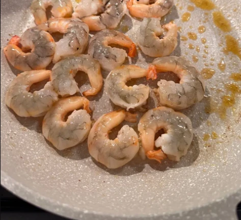 Bước 2: Sau đó cho tôm vào chảo và chiên mỗi mặt khoảng 2-3 phút, cho đến khi chuyển sang màu đỏ và cuộn tròn lại. Điều quan trọng là kiểm soát nhiệt độ, nếu bạn dùng lửa quá nhỏ sẽ không ngon, còn lửa lớn quá sẽ bị chín quá.