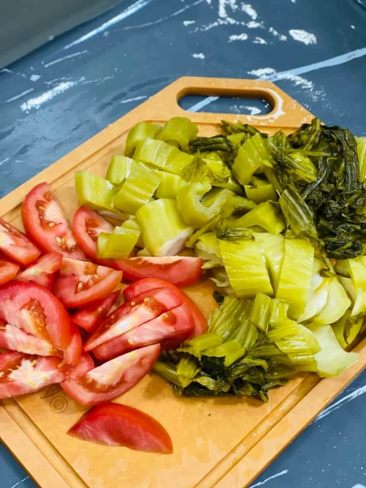 Cải chua: 400gr, nên chọn loại đã lên men vừa, không quá chua cũng không quá mặn.