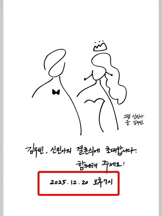Bên phía Kim Woo Bin, hình minh họa tuxedo với đường cắt cổ điển, nơ nhỏ và dáng suit gọn gàng càng củng cố hình ảnh một lễ cưới được chuẩn bị theo hướng trang nhã, kín đáo. Thay vì phô trương, cả hai dường như chọn sự vừa vặn và hài hòa, đúng với tinh thần tối giản mà họ theo đuổi suốt nhiều năm.