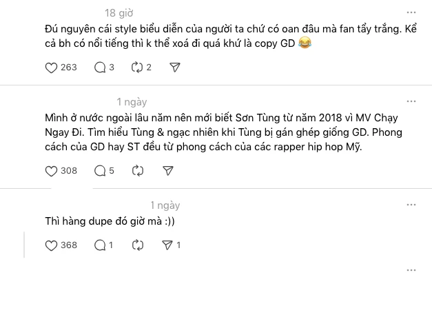 Video G-Dragon biểu diễn Too Bad trong đêm mưa Mỹ Đình khiến dân mạng "há hốc" vì "giống Sơn Tùng hơn cả Sơn Tùng". Giọng ca gốc Thái Bình từ lâu đã luôn bị "dán nhãn" là bản sao G-Dragon vì nhiều tạo hình iconic trùng hợp. Sau này, khi Sơn Tùng gây dựng được đế chế riêng, định kiến có phần thuyên giảm nhưng ấn tượng thì mãi in sâu trong lòng công chúng.