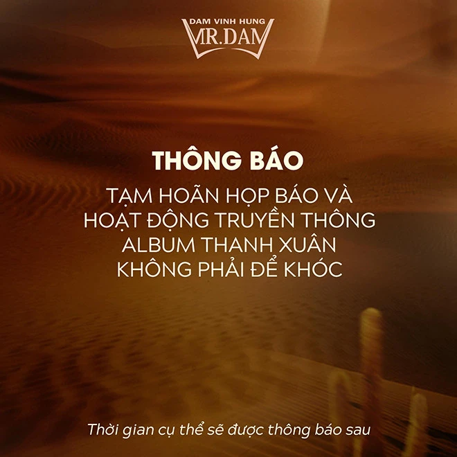 Ca sĩ Đàm Vĩnh Hưng thông báo hoãn họp báo và hoạt động truyền thông sản phẩm mới.