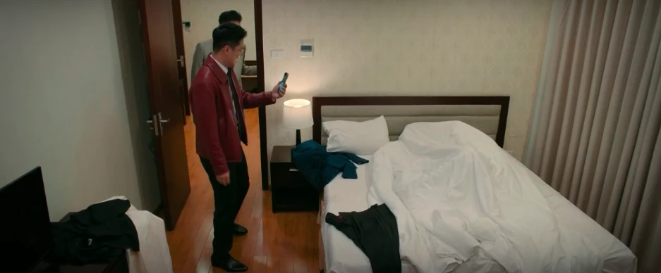Sau khi chuốc rượu Ngân, Nghiêm đưa cô đến một căn phòng trong khách sạn.