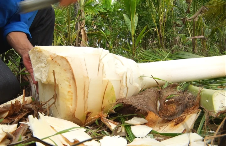 Củ hủ dừa là phần lõi non nhất của ngọn cây dừa. (Ảnh: H.T)