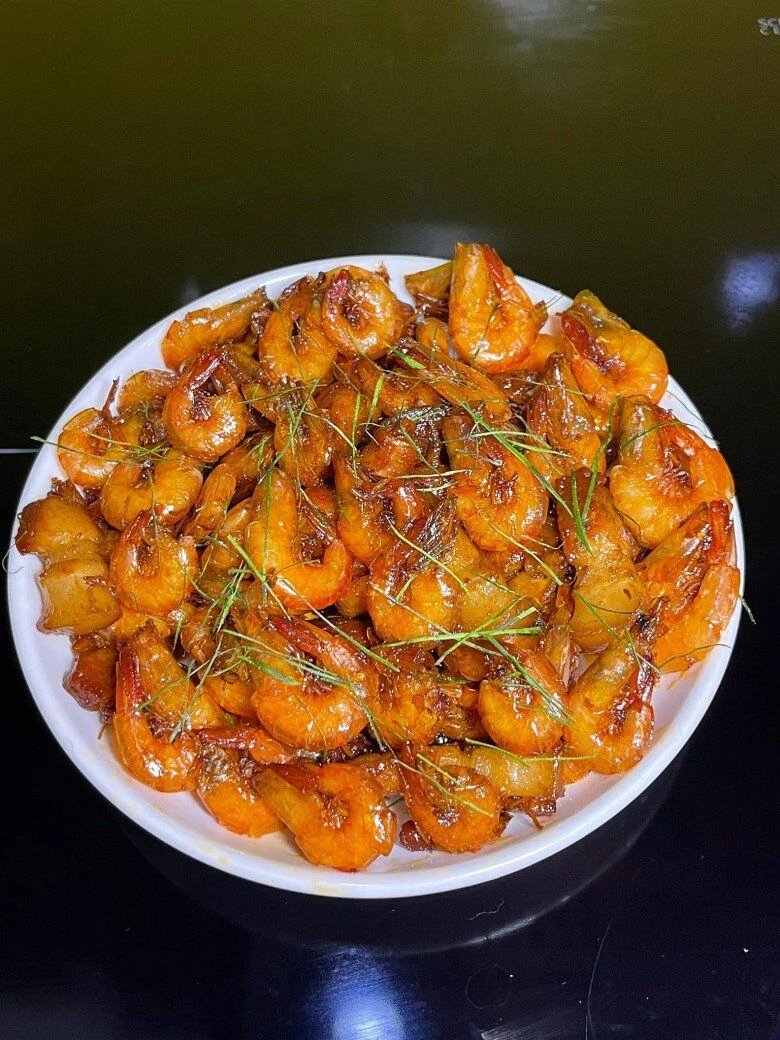 Như vậy, với những bước này, bạn sẽ có món tôm rang đỏ au, khô ráo, giòn ngon và thơm nức mũi.
