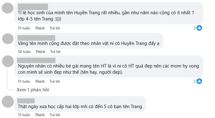 Những bình luận cho thấy mức độ phổ biến của cái tên Huyền Trang