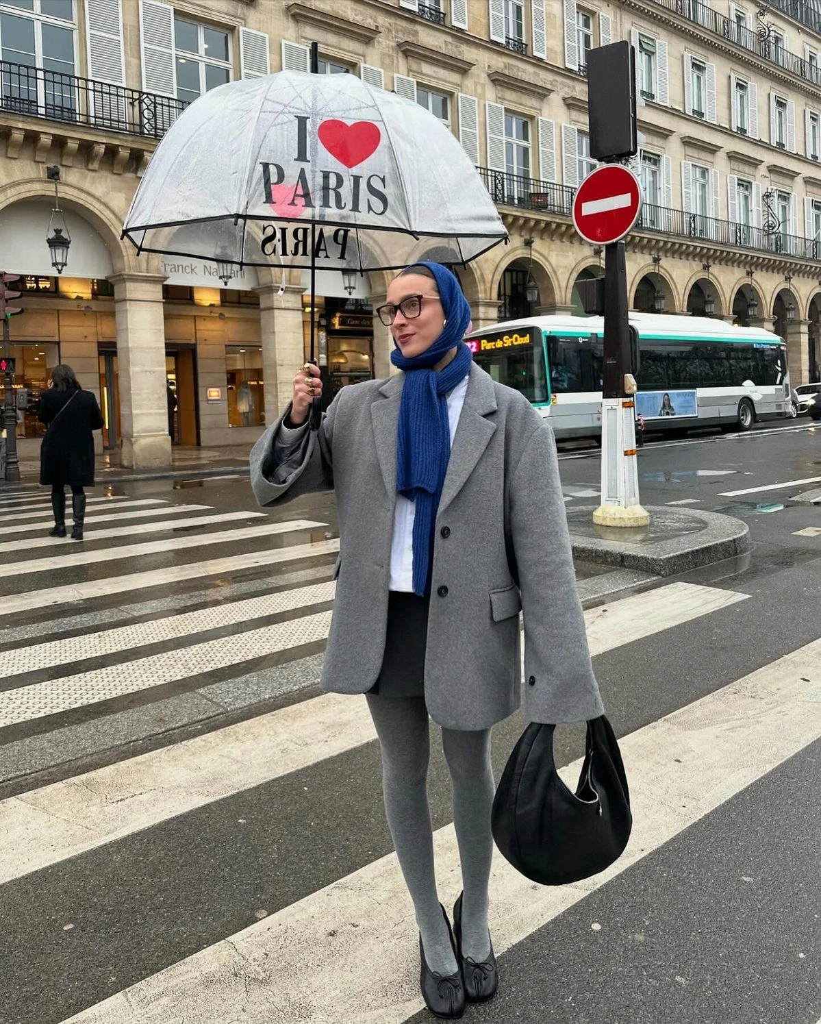 Trong muôn vàn lựa chọn, quần tất len màu xám được xem là phụ kiện dễ ứng dụng nhất. Chất liệu len đem lại cảm giác ấm áp, ôm sát đôi chân, đồng thời tạo nên vẻ mềm mại cho cả bộ trang phục của fashionista Lara Bubmann