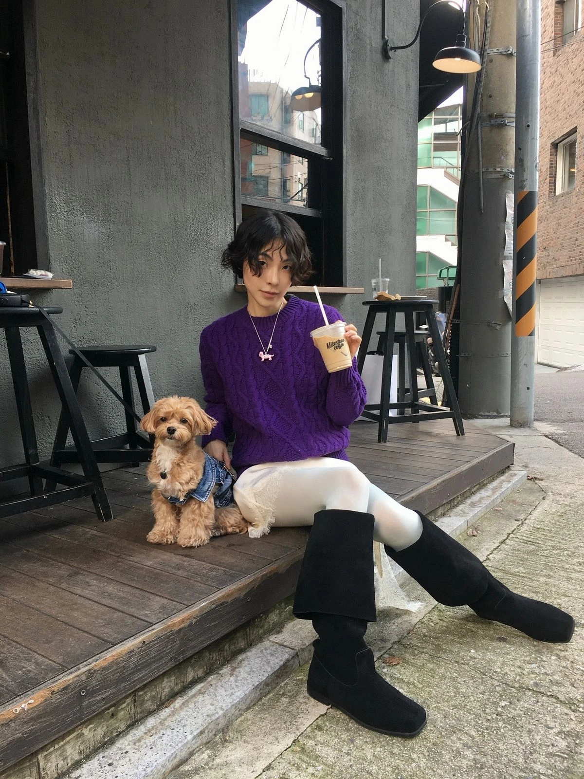 Giữa bối cảnh những gam màu trung tính thống trị mùa đông, một chiếc quần tất màu sắc trở thành điểm bùng nổ bất ngờ. Tuy nhiên, khi chọn quần tất có gam mạnh, cô nàng Minjoo Park đã tinh tế tiết chế các yếu tố còn lại