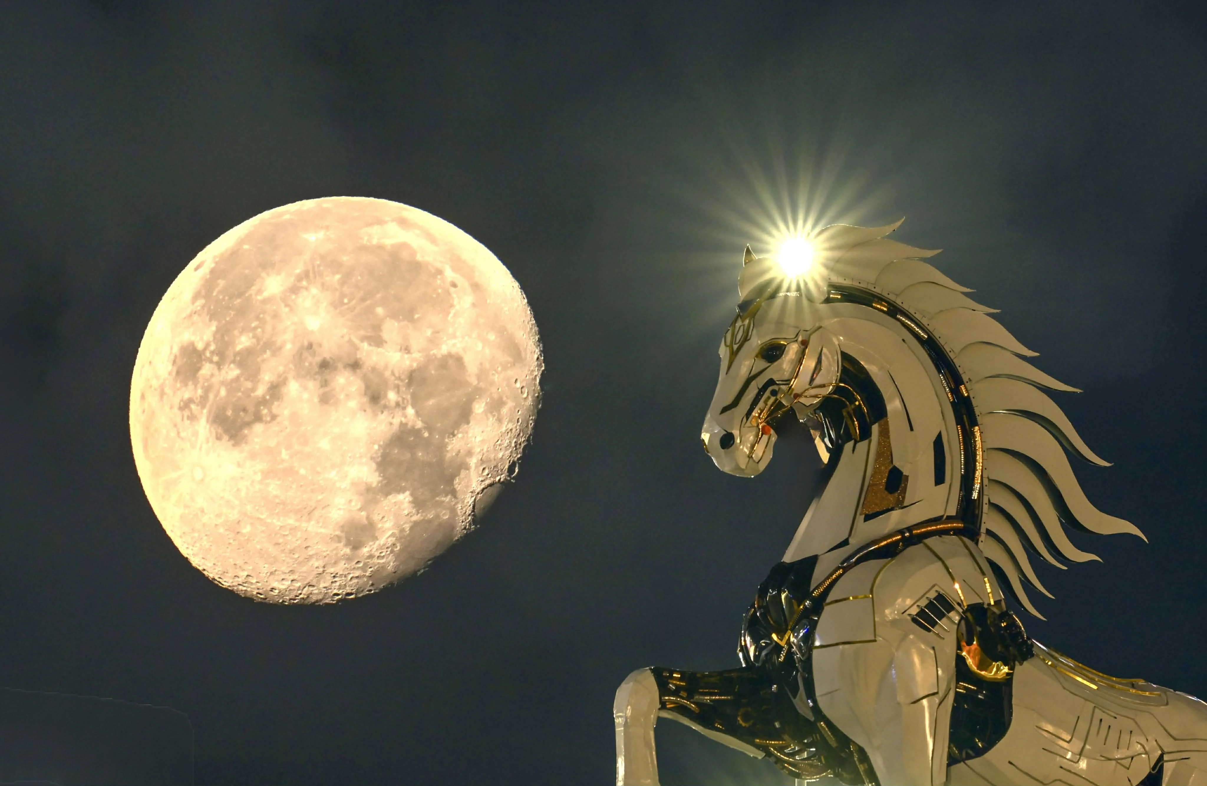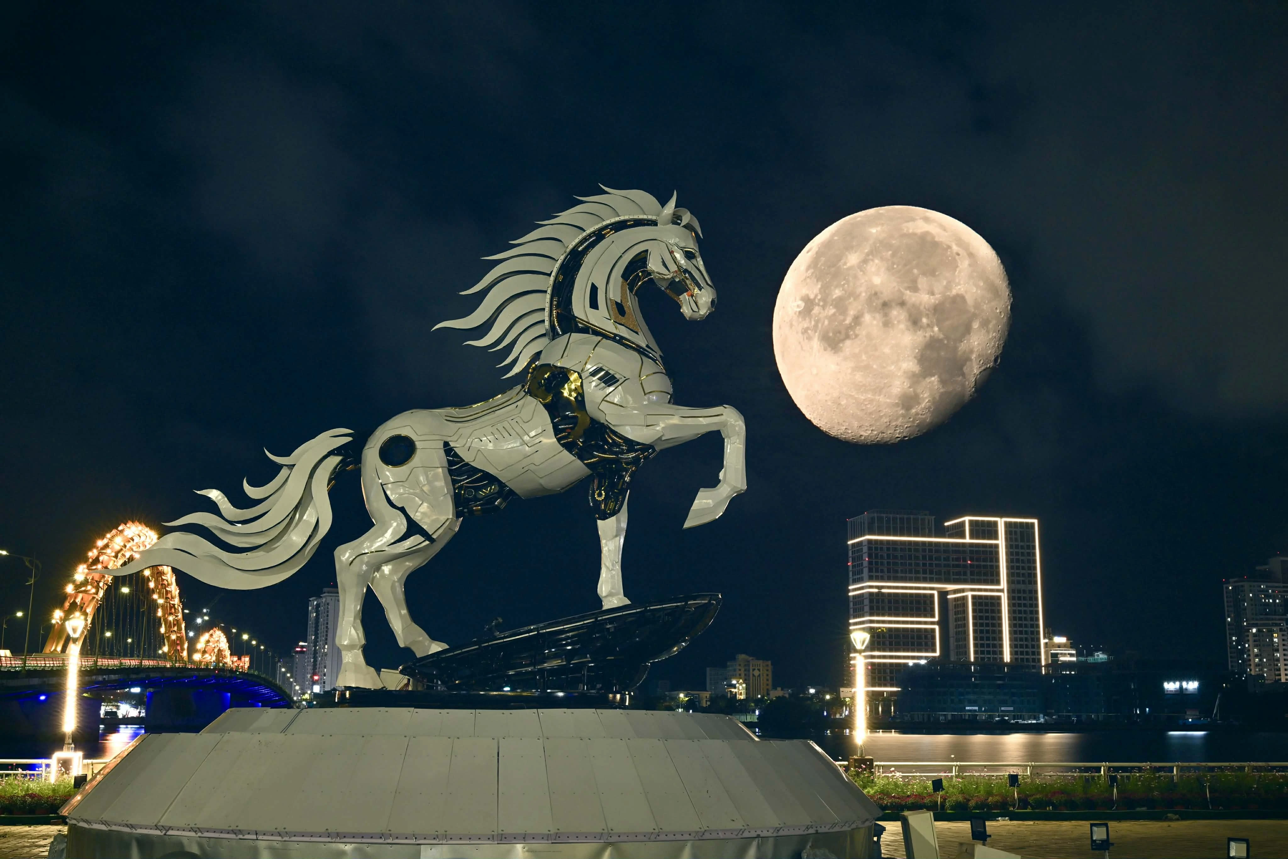 Hình ảnh "Kim Mã 4.0" dường như phát sáng dưới ánh trăng khuyết ở Đà Nẵng khiến người xem ấn tượng.