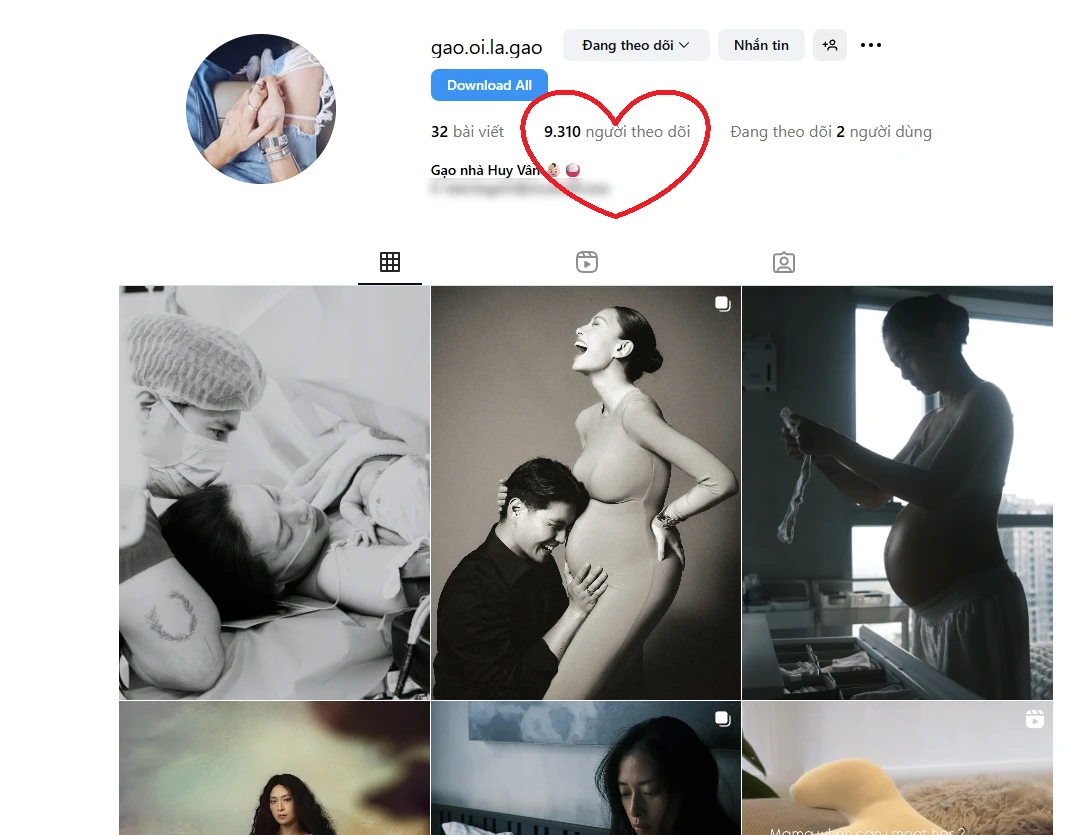 Dù chưa đầy một tuần tuổi, bé Gạo đã trở thành "hot kid" đúng nghĩa khi tài khoản cá nhân nhanh chóng thu hút hơn 9.300 người theo dõi. Con số này vẫn đang tăng từng giờ, một minh chứng rõ ràng cho sức hút của tiểu công chúa nhà Huy Trần - Ngô Thanh Vân.