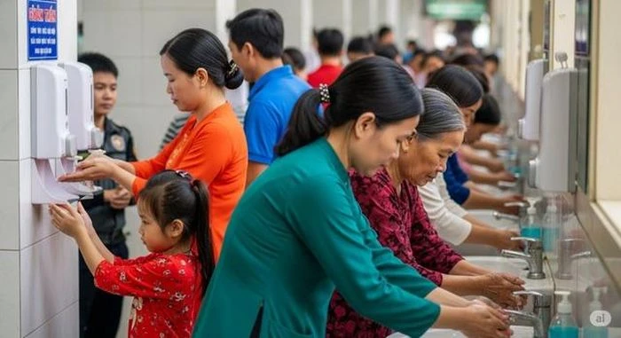 Người dân rửa tay sát khuẩn tại nơi công cộng – biện pháp đơn giản nhưng hiệu quả phòng tránh Mpox. Ảnh minh họa