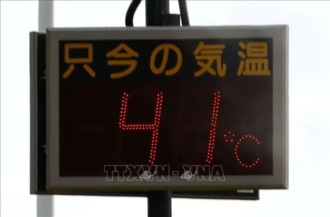 Nhiệt kế điện tử hiển thị 41 độ C tại Gunma , Nhật Bản ngày 5/8/2025. Ảnh: Kyodo/TTXVN