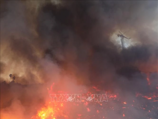 Khói lửa bốc lên từ đám cháy rừng tại bang California , Mỹ ngày 7/8/2025. Ảnh: THX/TTXVN