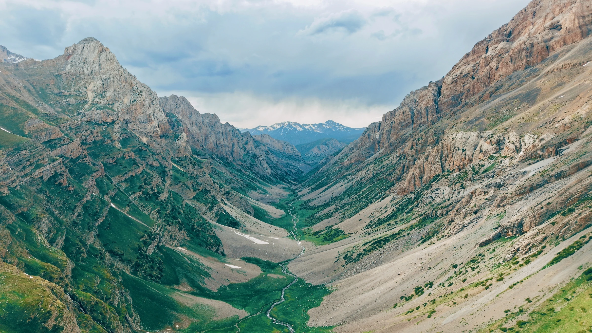 Địa hình cung trekking gần như không có đường mòn. 2/3 chặng là những hố đá khổng lồ, gập ghềnh, trơn trượt, chỉ có thể dò đường bằng bản đồ offline đã tải sẵn. Cung đường dẫn đến Eshenkul thực tế khắc nghiệt hơn những gì nam du khách hình dung. Đôi khi, anh và người tài xế phải băng qua những con suối lạnh buốt, hình thành từ băng tan trên núi. Nước chảy xiết không thể lội qua, họ buộc phải nhảy từ tảng đá này sang tảng đá khác. Mỗi cú nhảy đều tiềm ẩn rủi ro vì chỉ cần trượt chân là có thể bị nước cuốn.