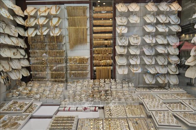 Trang sức vàng được bày bán tại tiệm kim hoàn ở Beirut, Liban. Ảnh tư liệu: THX/TTXVN