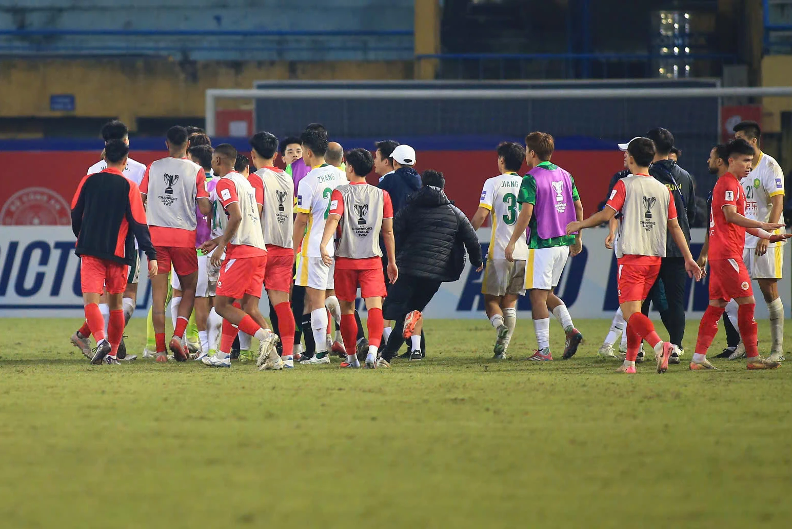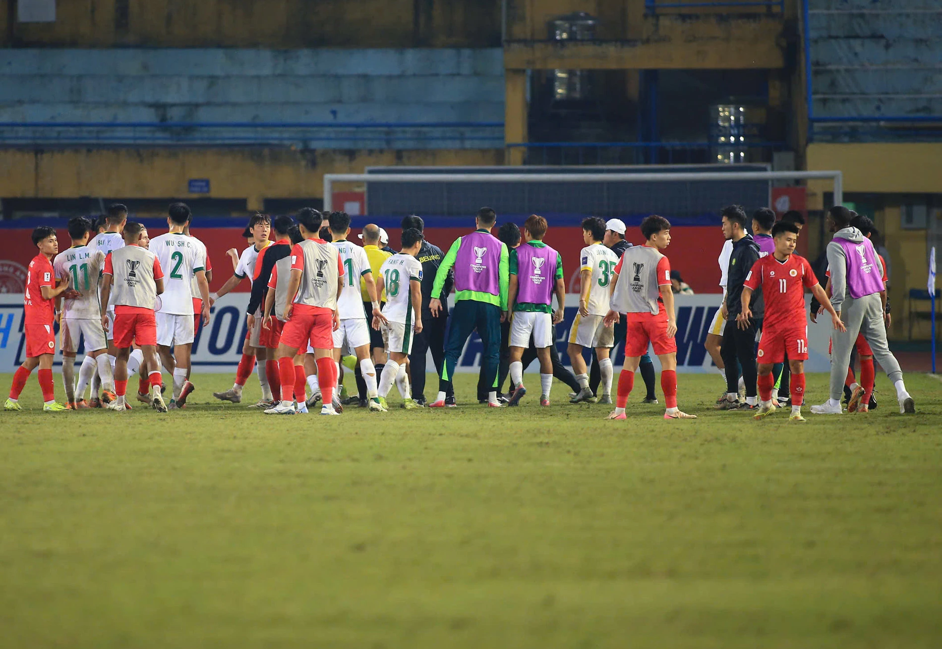 Phút 90 4, Cao Yongjing của Bắc Kinh Quốc An phạm lỗi với Rogerio bên phía CAHN. Hai cầu thủ lời qua tiếng lại, kéo theo những cái đầu nóng trên sân lao vào nhau.