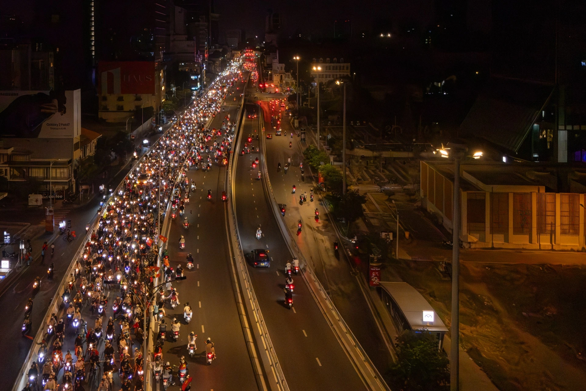 CĐV xuống đường ‘đi bão’, trung tâm TP.HCM rực đỏ sắc cờ