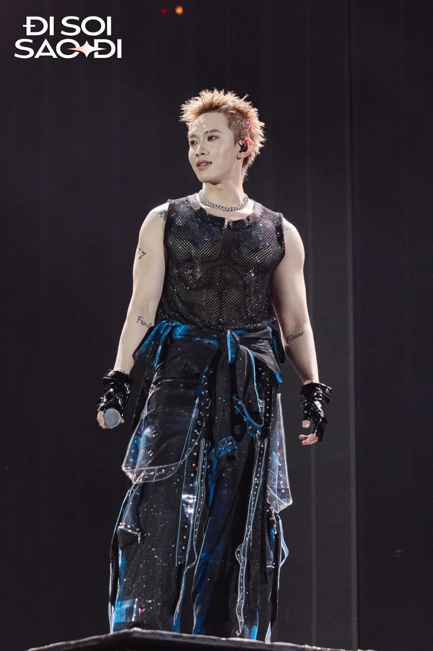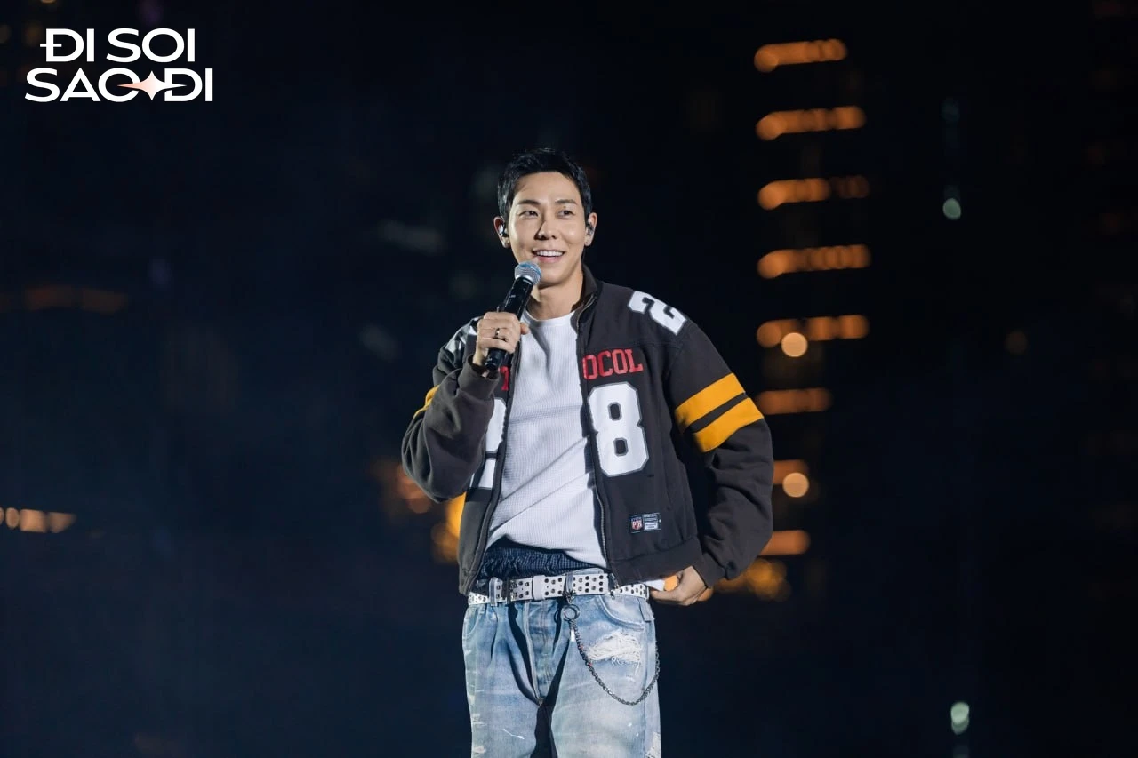 Nếu Kang Daniel mang đến sự ấm áp và chân thành thì LOCO lại là “mồi lửa” khiến không khí đêm nhạc bùng nổ theo đúng nghĩa đen. Ngay khi bước ra sân khấu, rapper nhà AOMG đã tạo ra một trường năng lượng khác hẳn. Chỉ sau vài câu rap đầu tiên, LOCO đã khiến khán giả hú hét đến mức chính anh cũng “không chịu nổi” sức nóng ấy và cởi phăng áo khoác ngay trên sân khấu. Chưa dừng lại ở đó, LOCO thêm “dầu vào lửa” bằng màn té nước đầy phấn khích khiến các fan phía dưới gào thét khản cả giọng.