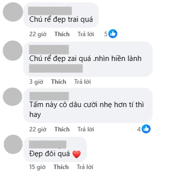 Vào ngày 11/11 – sát ngày cưới, người đẹp mới lần đầu tiên tự đăng ảnh chồng, công khai diện mạo của anh trên MXH. Phía dưới khoảnh khắc của cặp đôi, cư dân mạng để lại nhiều bình luận chúc mừng hạnh phúc cặp đôi và dành lời khen cho vẻ ngoài điển trai của chú rể.