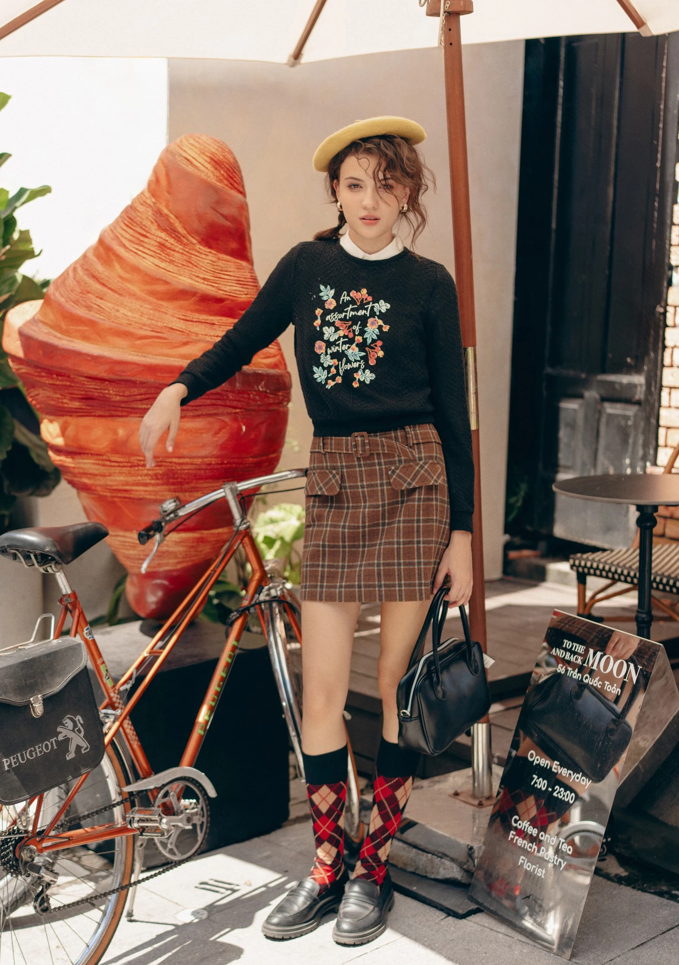 Mang nét hoài niệm vào bản phối với chân váy kẻ ca rô