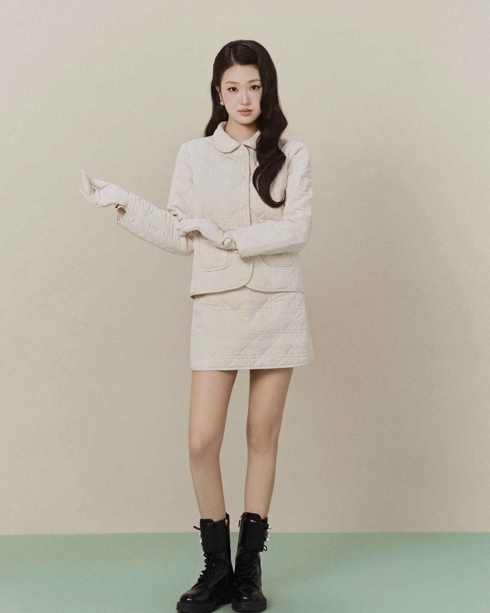 Tăng thêm sự cá tính với set đồ “da toàn tập”, nơi chất liệu da trở thành tuyên ngôn phong cách rõ nét. Sự đồng nhất từ áo khoác đến chân váy mang lại vẻ ngoài mạnh mẽ, thời thượng nhưng vẫn giữ được nét tinh tế