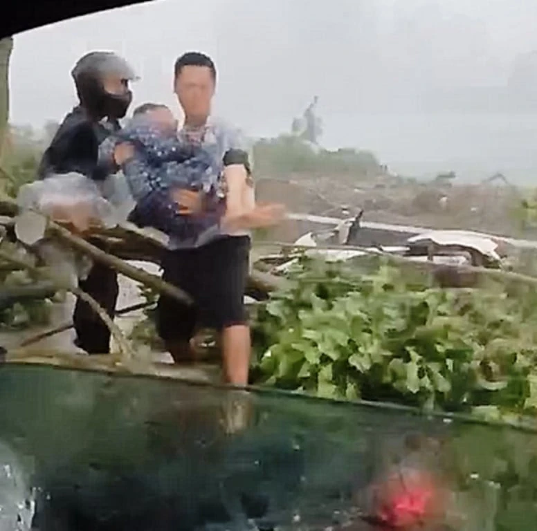 Ngày 20/7, trên mạng xã hội facebook xuất hiện đoạn clip dài 13 giây ghi lại cảnh chàng trai không ngần ngại bế người phụ nữ lớn tuổi bị cây đè trúng trong cơn giông ngày 19/7 lên xe ô tô đưa tới bệnh viện cấp cứu.