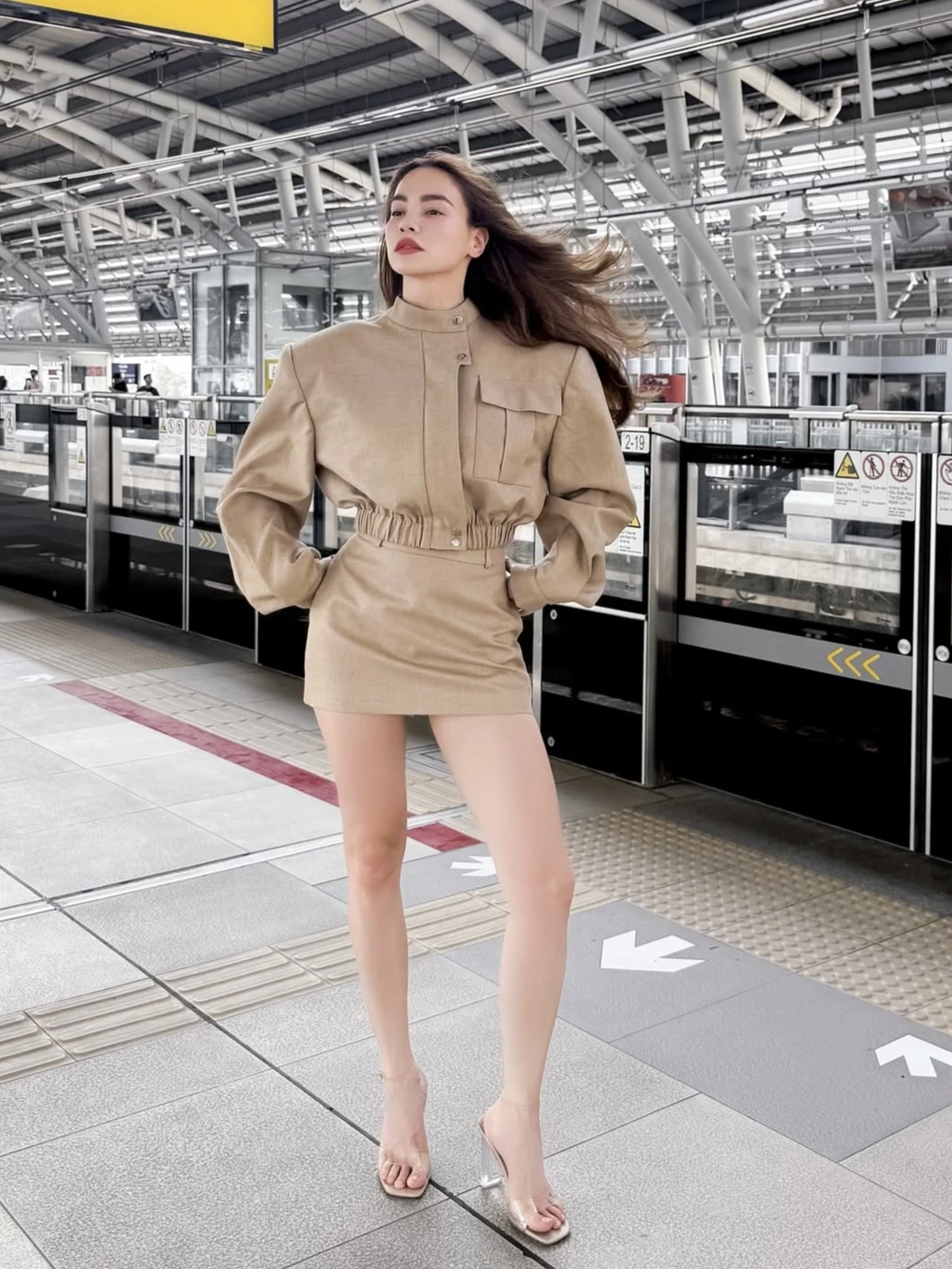 Hồ Ngọc Hà xuất hiện nổi bật trong bộ váy ngắn gam be với phom dáng tối giản nhưng đầy tính thời thượng . ẢNH: @HONGOCHA