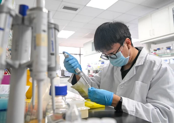 Một nhà nghiên cứu làm việc tại phòng thí nghiệm của Viện Hàn lâm Khoa học Trung Quốc ở Thiên Tân. Ảnh: Xinhua