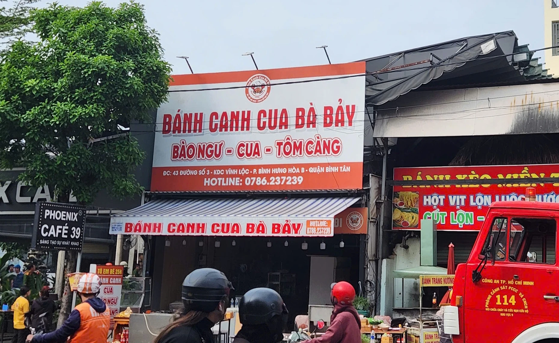 Chỉ trong ít phút, ngọn lửa lan rộng rồi cháy lan, gây hư hỏng một phần tiệm bánh canh ngay sát vách.