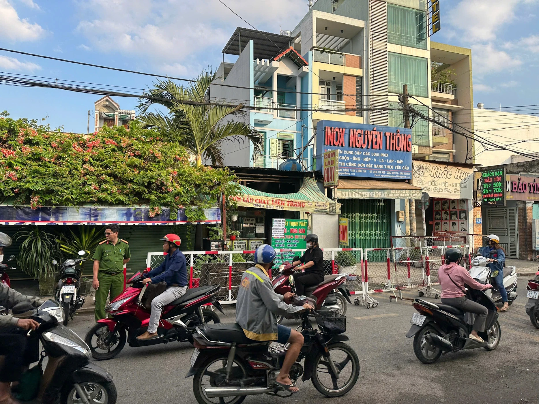 Công an phong toả hiện trường vụ cháy quán chay khiến 2 mẹ con tử vong ở TPHCM. Ảnh: TK